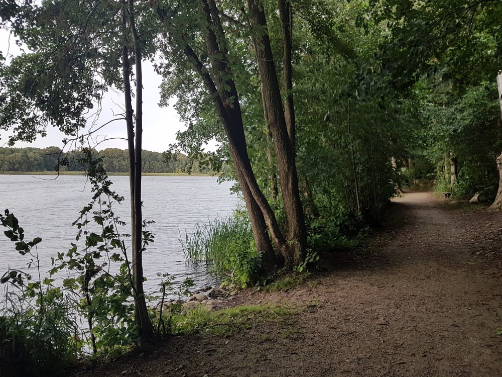 Auf einem kleinen Spazierweg kommt man dann runter zum See. Abgesehen von zwei Radfahrern und einer Hundebesitzerin habe ich dort den Abend ueber keine anderen Leute gesehen. Wunderbar. Diese Ruhe.
