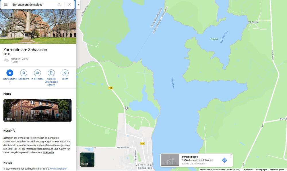 Noerdlich von Zarrentin, am Kirchsee, einem kleinen Seitenarm des Schaalsees, gibt es einen Parkplatz. Der ist zumindest von einer Seite her ein bissel sicht-geschuetzt. Wenn man weit genug hinten parkt, sehen die Autofahrer einen nicht.