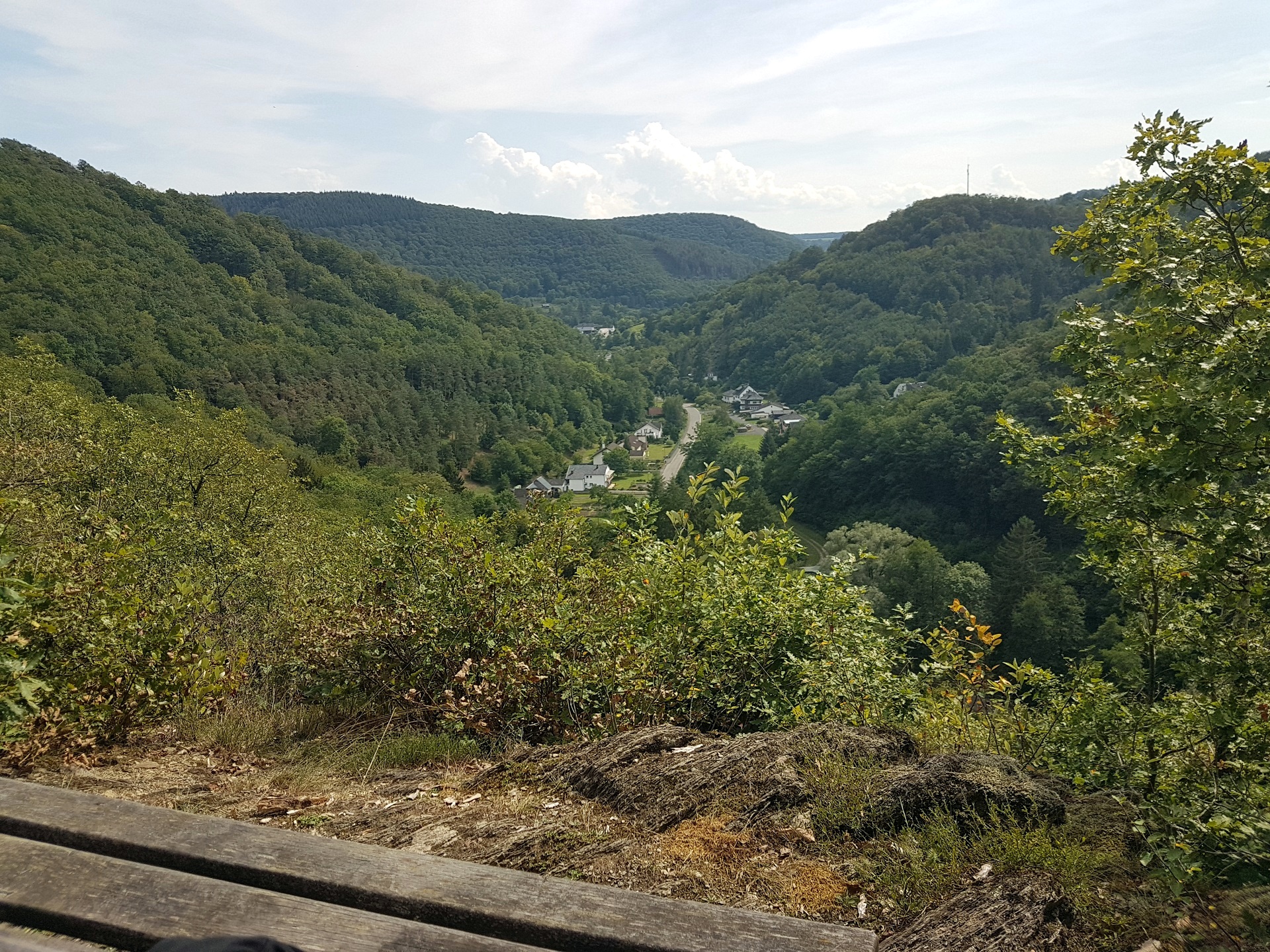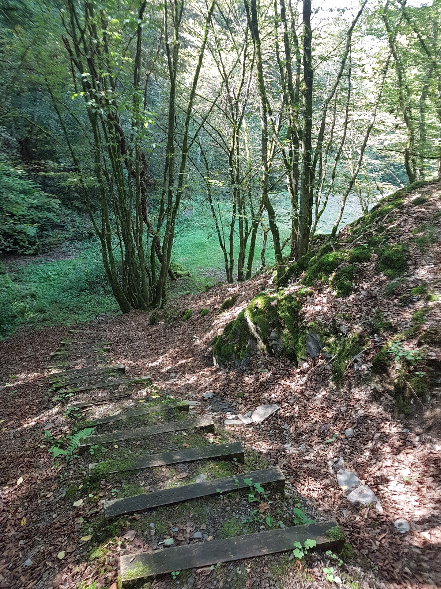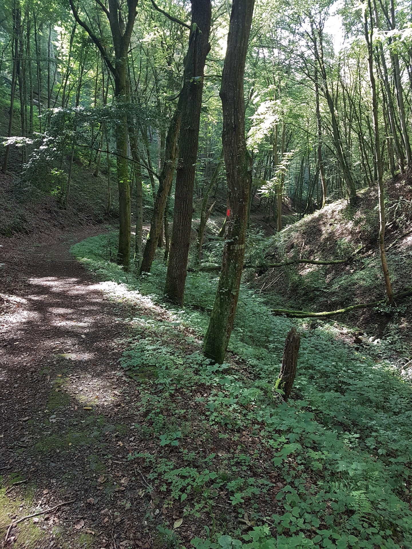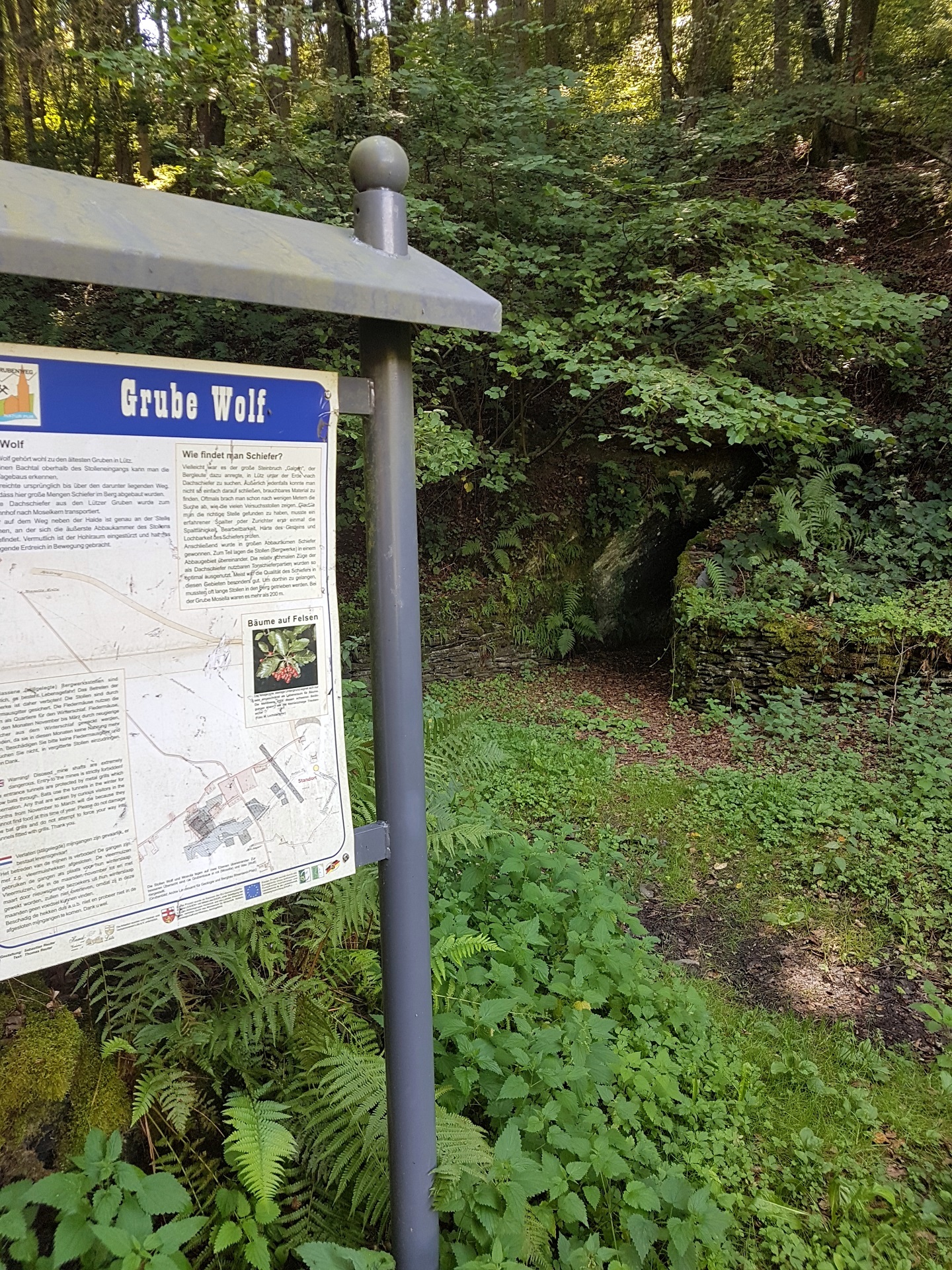 In der Mappe vom Campingplatz … man bekommt hier eine Mappe mit Touri-Vorschlaegen, hatte ich auch noch nicht… wurde eine Wanderung beschrieben. Der Schiefergrubenweg, entlang der alten Schieferbergwerke in der Naehe von Lütz. Wenn man tags zuvor in Cochem war und die Menschenmengen gesehen hat, die sich durch die Stadt waelzen und man geht danach diese Wanderung, glaubt man, man haette einen Evakuierungsbefehl versaeumt. Zwei Leute kamen uns entgegen, ganz am Anfang, danch auf der gesamten Strecke keine weitere Seele. Sehr erholsam, viel Natur und auch ein bissel anstrengend.