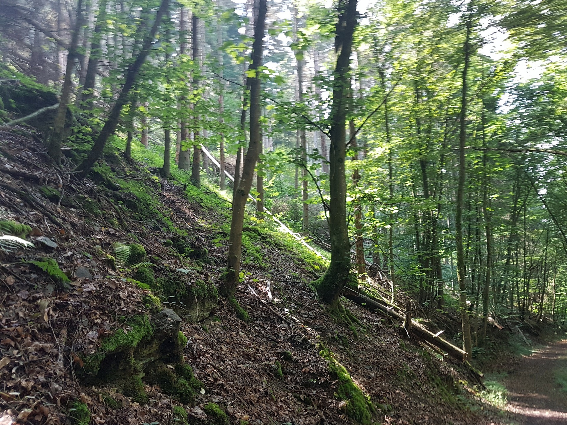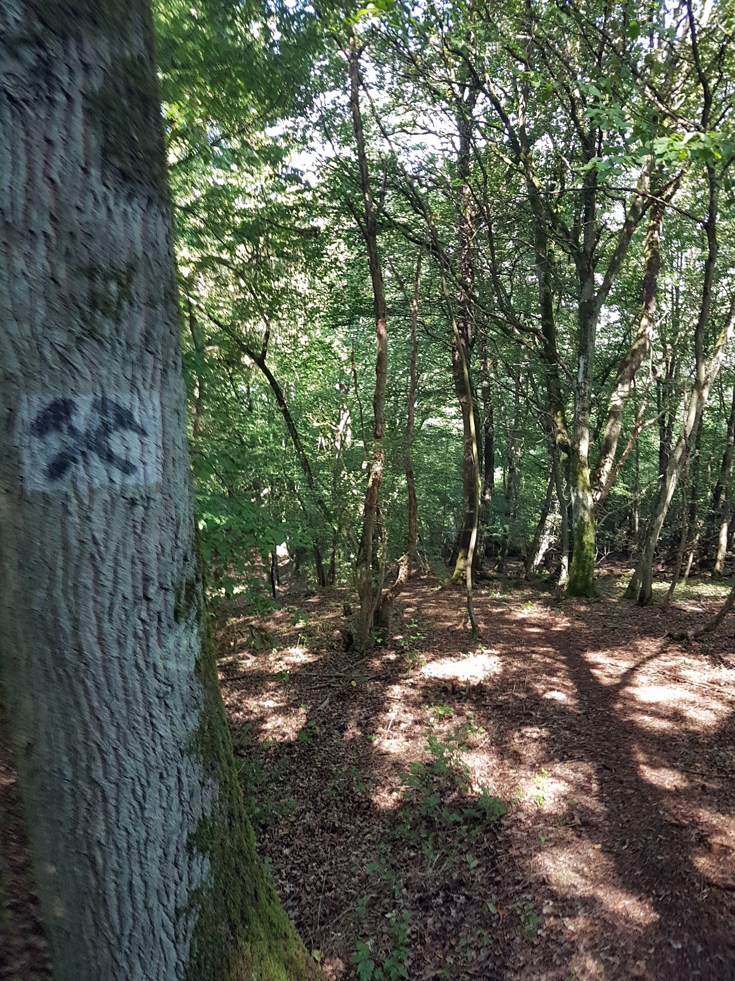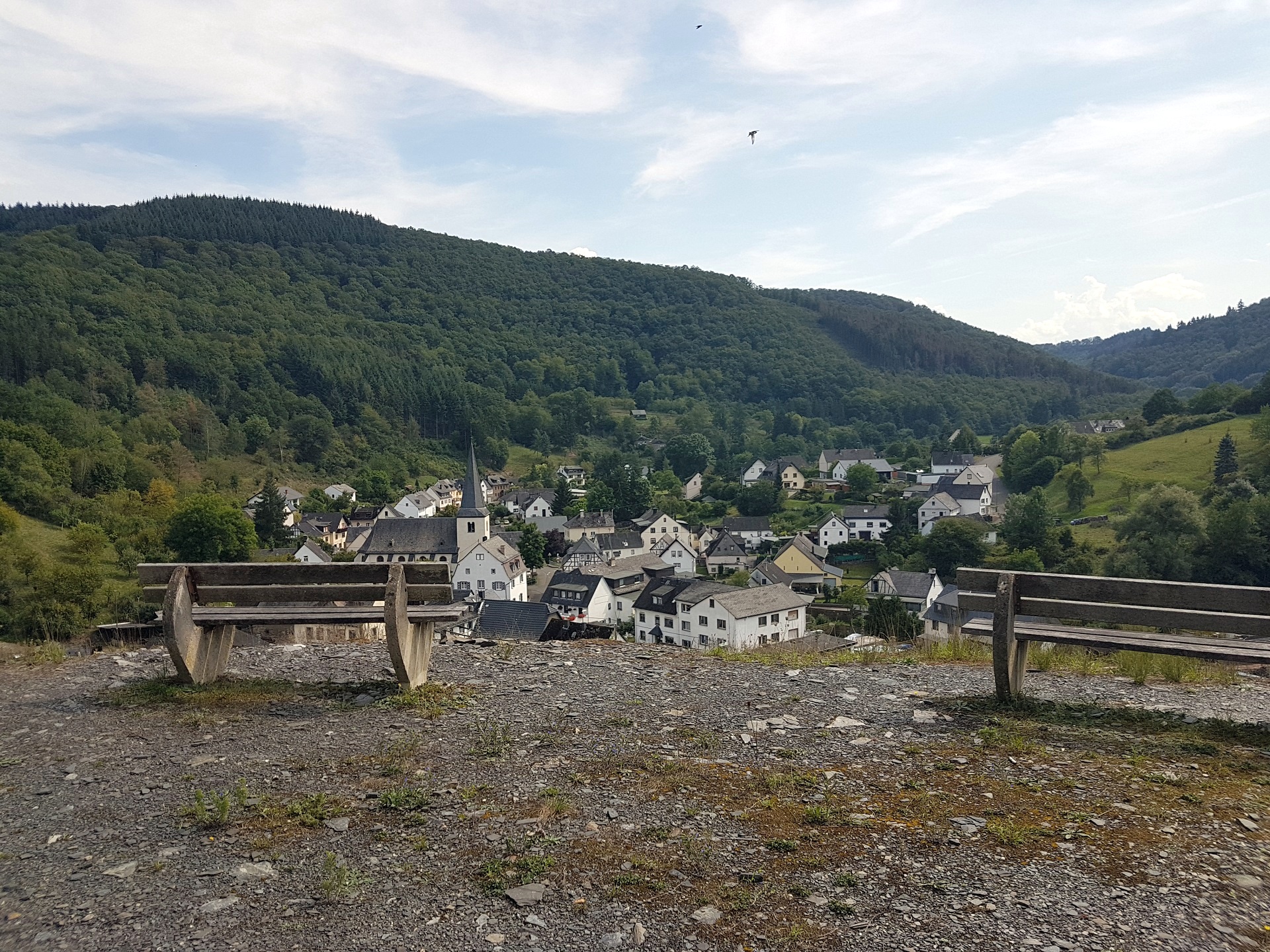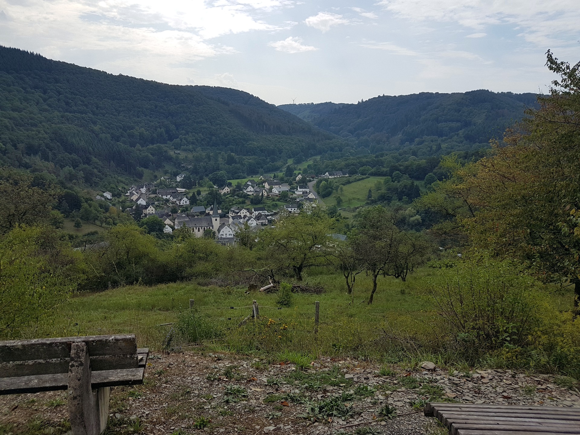 In der Mappe vom Campingplatz … man bekommt hier eine Mappe mit Touri-Vorschlaegen, hatte ich auch noch nicht… wurde eine Wanderung beschrieben. Der Schiefergrubenweg, entlang der alten Schieferbergwerke in der Naehe von Lütz. Wenn man tags zuvor in Cochem war und die Menschenmengen gesehen hat, die sich durch die Stadt waelzen und man geht danach diese Wanderung, glaubt man, man haette einen Evakuierungsbefehl versaeumt. Zwei Leute kamen uns entgegen, ganz am Anfang, danch auf der gesamten Strecke keine weitere Seele. Sehr erholsam, viel Natur und auch ein bissel anstrengend.